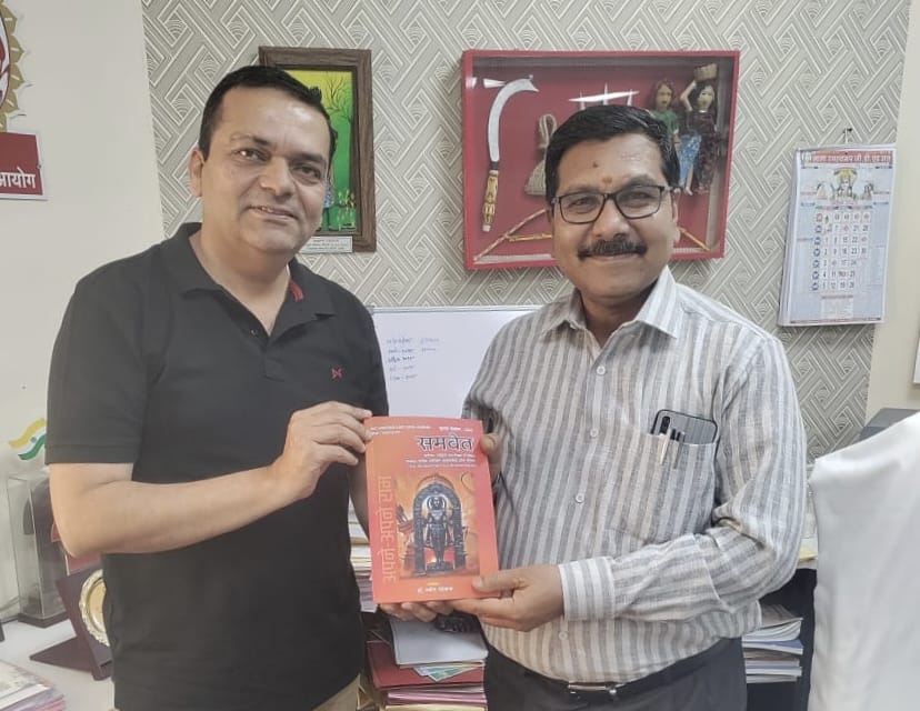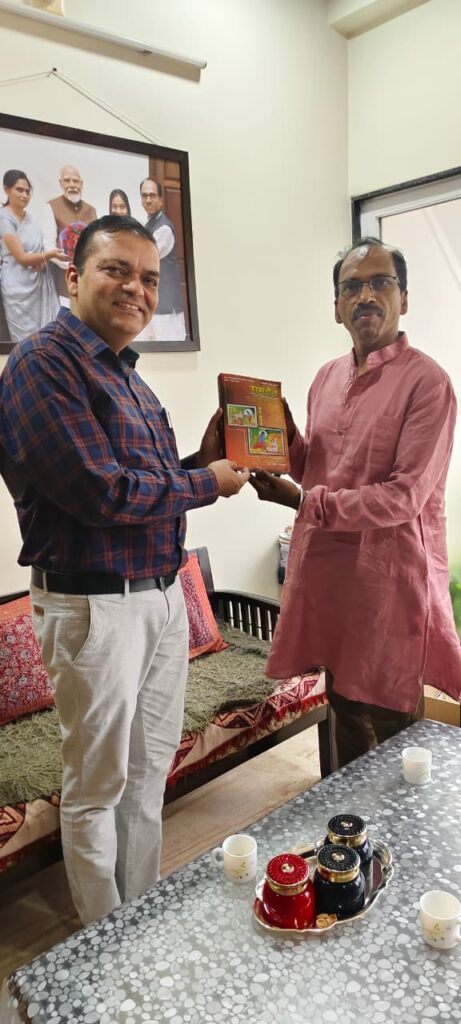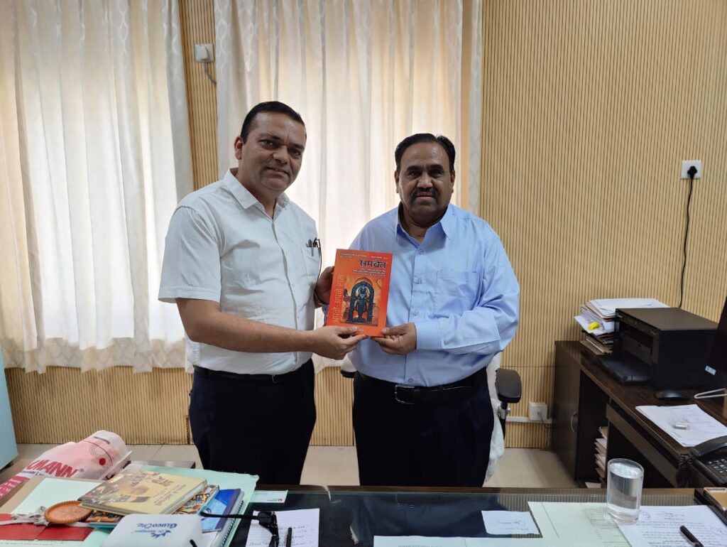 मध्य प्रदेश लोक सेवा आयोग के अध्यक्ष प्रो. राजेश लाल मेहरा को समवेत के राम काव्य की प्रति भेंट करते हुए